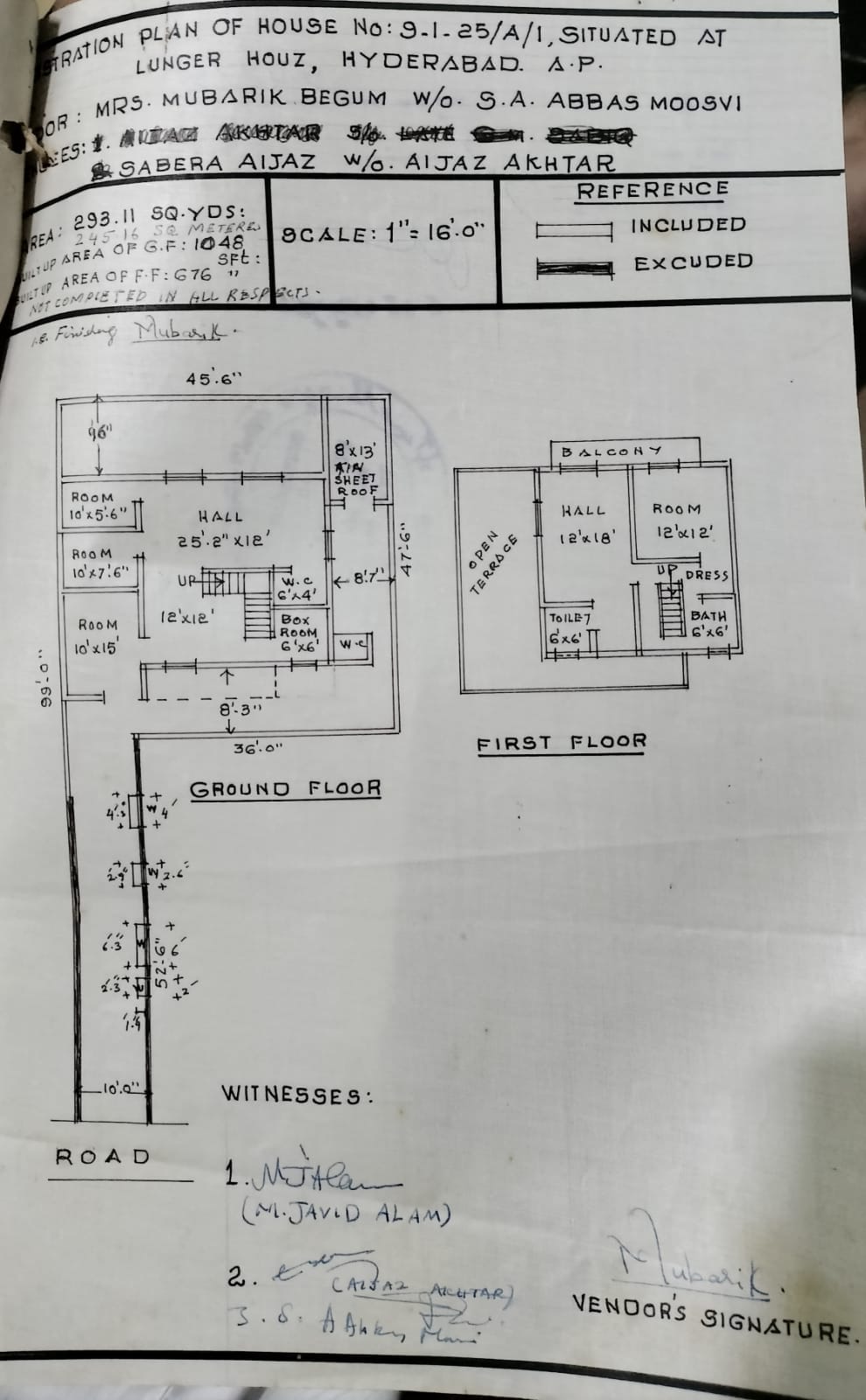 Hashim Nagar, Langar House: Area total, 293.11 sq yard, Built up area: Gf 1048, 1Fl. 676, total 1724 sq ft.